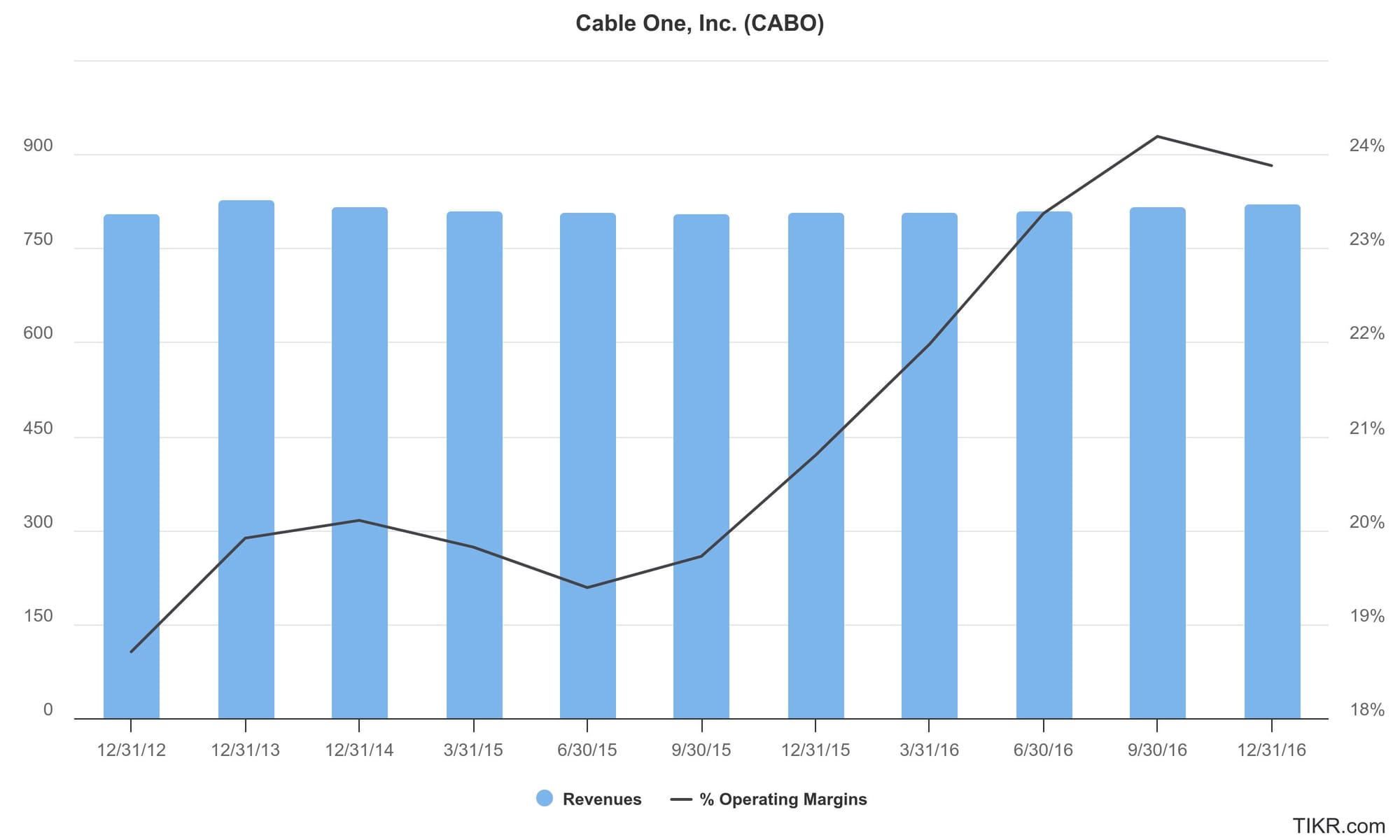 This strategy was differentiated and ahead of its time. For several years, Cable One had stagnant revenue as video subscriptions declined. However, CABO’s new HSD core was growing at a steady rate, so margins were steadily improving despite the stagnant revenue.